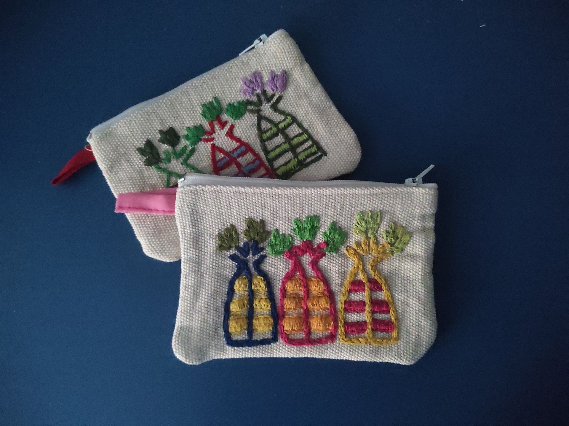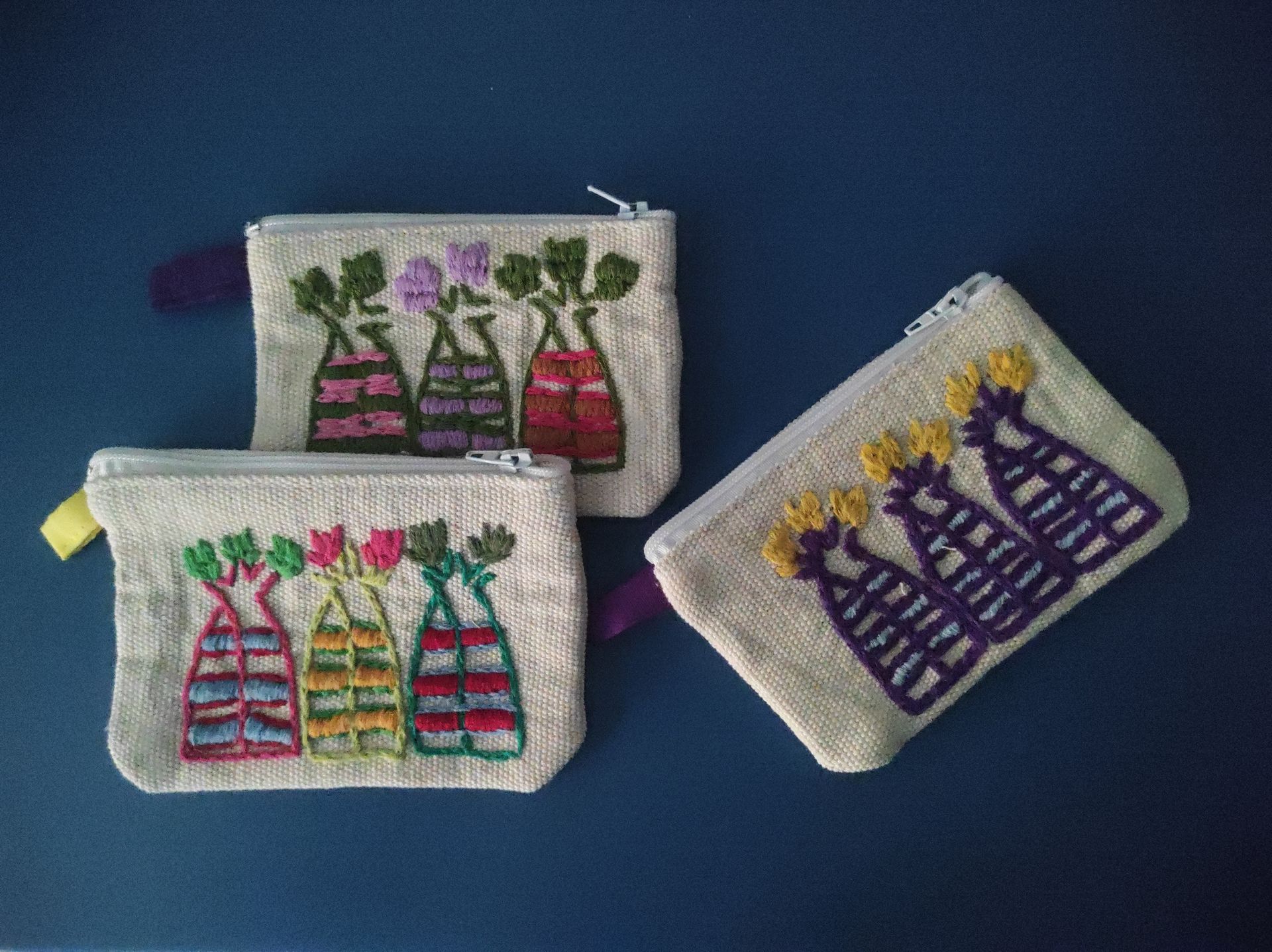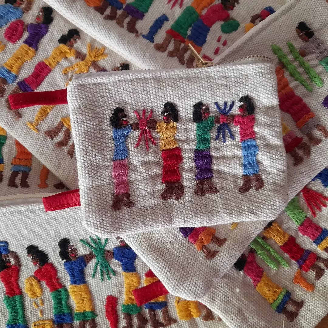 Nuestros productos incluyen manteles, paneras, marcos, cojines, bolsos, neceseres, estuches y monederos. Debido a la naturaleza artesanal del proyecto, no podemos garantizar un stock permanente. Por ello, mostramos aquí una selección de productos que sirve como referencia del tipo de artículos que realizamos.